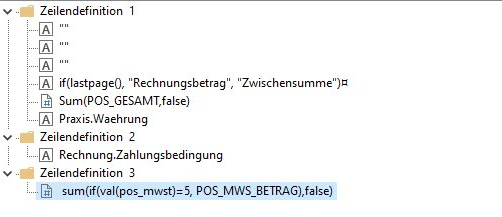 Im unteren Beispiel geben wir die Summe aller Positionen für den MwSt. 5% aus: