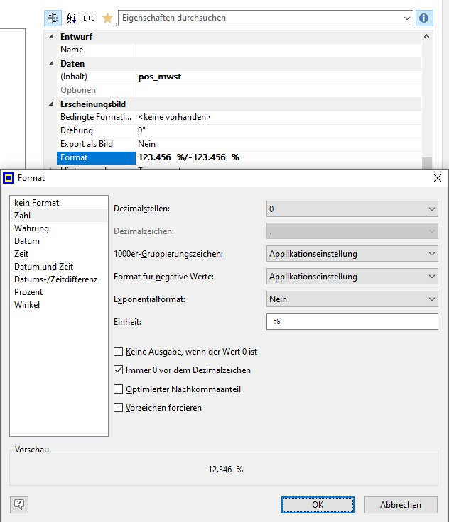 Diese Funktion steht Ihnen nur in PAS NT Premium zu Verfügung, wenn Sie das MwSt. Modul erworben haben. Die Summe wird i.d.R. in der Fußzeile ausgegeben.